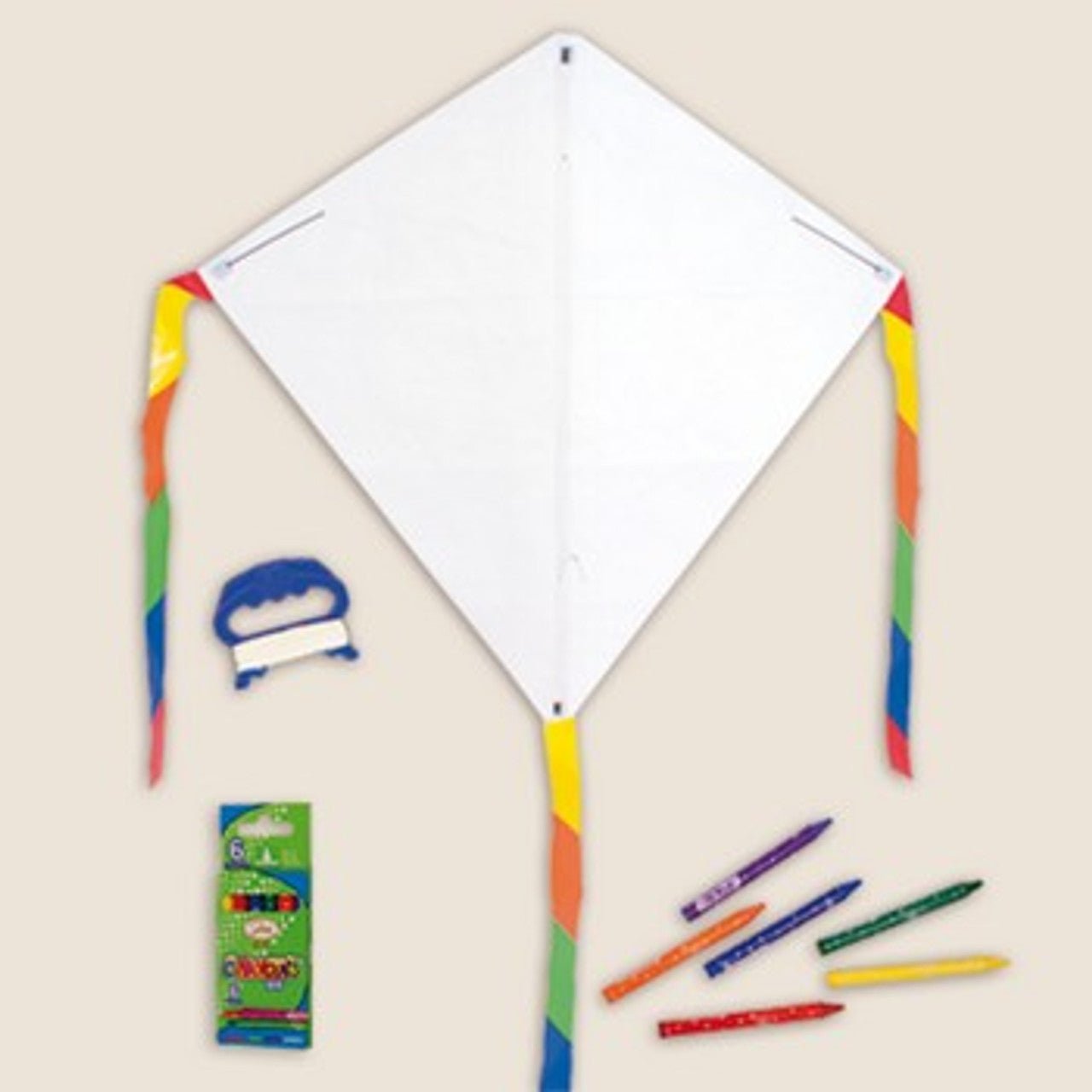 Comes complete with pre-made kite, frame, 6 crayons, polyester line and handle.